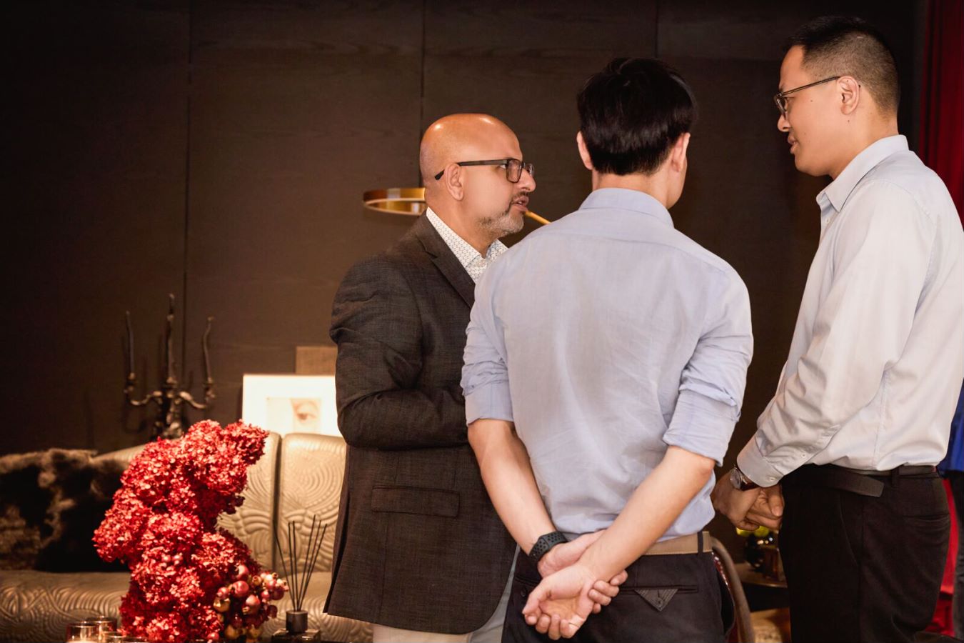SENYUAN森源家具國際部負責人嚴其年(右一)與客戶交流中